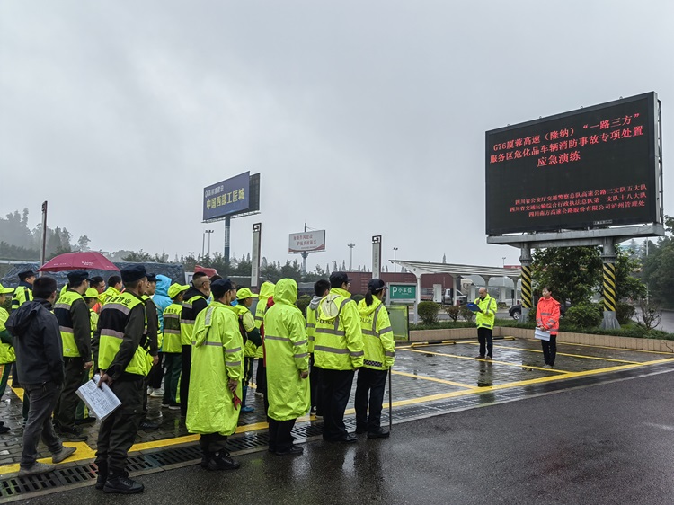 为降低突发安全事故与环境污染事故的危害性,消除次生事故风险隐患,11月15日,隆纳高速“一路三方”在泸州西服务区联合开展2023年服务区危化品车辆消防事故专项处置应急演练。高速交警三支队五大队、交通执法总队一支队十八大队、南方公司泸州管理处及服务区各协作单位共30余人参加。
