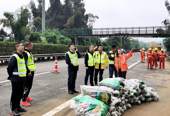 4月4日20时3 0分左右,隆纳高速K1894+880左幅边坡垮塌,导致少量石块散落在主车道与超车道上,道路交通受阻。险情就是命令,泸州管理处迅速反映,立即启动应急预案,并及时报告公司值班领导,值班领导及相关部门第一时间赶到现场。同时隆纳高速“一路三方”联合地方应急办、工程抢险施工单位采取有效措施科学布控,立即进行现场管控,设置交通安全标志,同时抢险单位对垮塌区域进行清方、打围,并设置钢管、沙袋双层挡墙,落实人员24小时值守,确保清明节期间道路畅通。节后,公司领导、相关部门及施工单位负责人研究确定抢险处治方案,科学周密安排抢险,及时消除边坡垮塌安全隐患,确保了道路安全畅通。